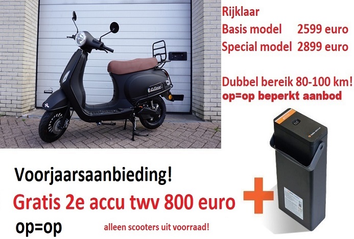 De scooter wordt gratis bezorgd binnen 20 kilometer, daar buiten 75 euro.
